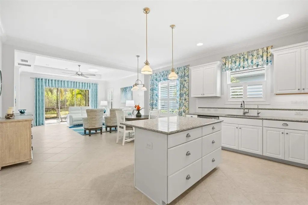 Experience resort-style amenities and elevated, effortless living at Grand Palm - an exceptional community located just minutes from Venice Beach and Wellen Park. Perfectly positioned on a south-facing homesite, this well-appointed residence offers exceptional privacy and serene views. The gourmet kitchen is designed to impress with quartz countertops, a spacious center island, tile backsplash, walk-in pantry, and GE stainless steel appliances, including a natural gas range. The primary suite provides a peaceful retreat with a custom walk-in closet, dual vanities, and a spa-inspired glass and tile shower. Two generously sized guest bedrooms share a full bath, while a versatile bonus room makes an ideal office, den, or additional living space. Storm Smart hurricane screens, reverse osmosis system and whole house water softener add comfort and confidence year-round. Residents of Grand Palm enjoy an unmatched lifestyle featuring three resort-style pools and spas, a state-of-the-art fitness center, miles of scenic trails, dog park, lake with kayak storage, fishing areas, playgrounds, splash pad, and multiple parks. Sports enthusiasts will appreciate tennis, pickleball, bocce, basketball, and sand volleyball courts, and a full-time activities director coordinating year-round events. Located just nine miles from historic downtown Venice and close to the shopping, dining, and entertainment of Wellen Park, this home offers the perfect blend of privacy, convenience, and vibrant community living. Home can be sold turn-key with minor personal property exceptions, under a separate agreement.